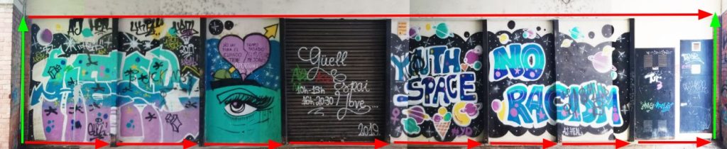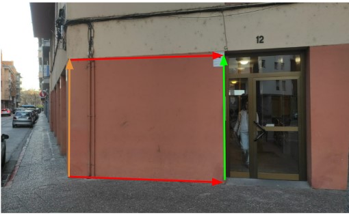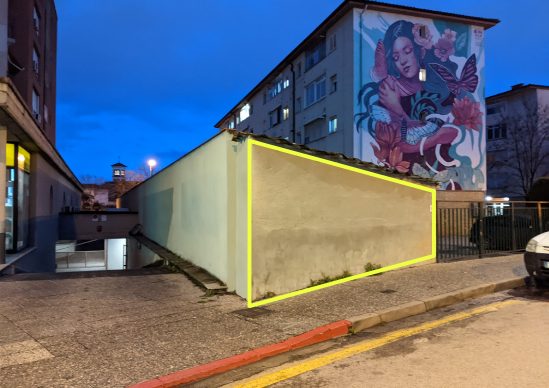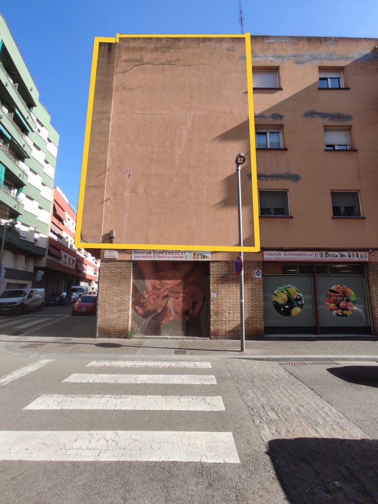 NOTA: Cal respectar el gual d’aparcament del mur: no es pot intervenir artísticament. Està ubicat a la cantonada esquerra, tal com mostra la imatge.
