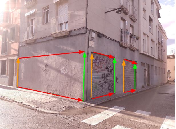 Façana: 7 m d’amplada x 2,69 mt / 2.69 mt d’alçada