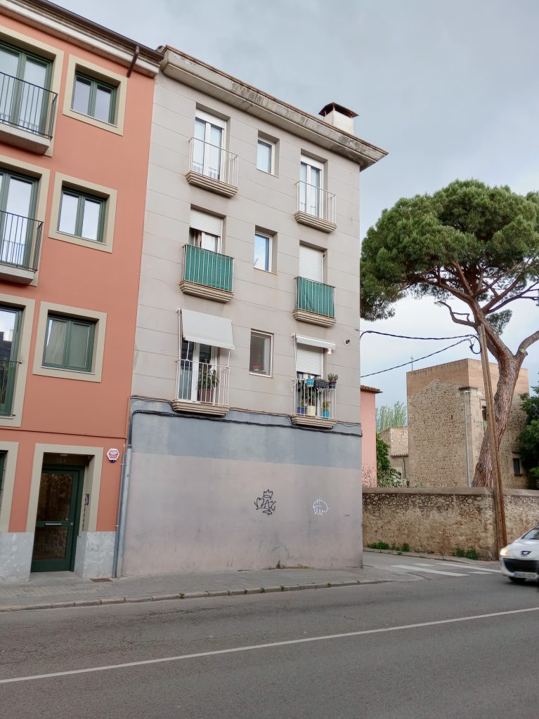 La façana forma part d’un edifici de residències al barri de Santa Eugènia de Ter.